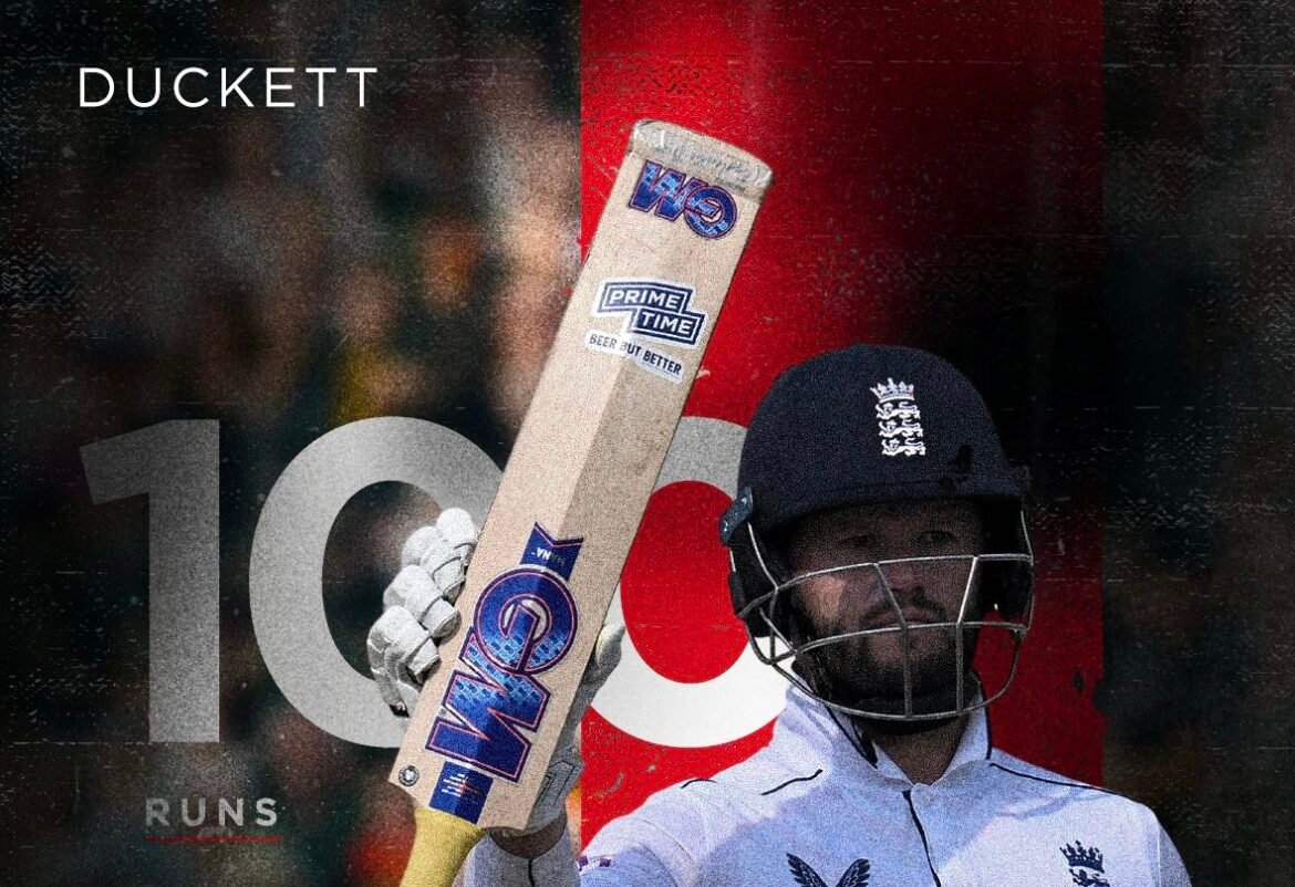 Ben Duckett is completed his fourth Test century. He scored 114 runs on 129 bolls.