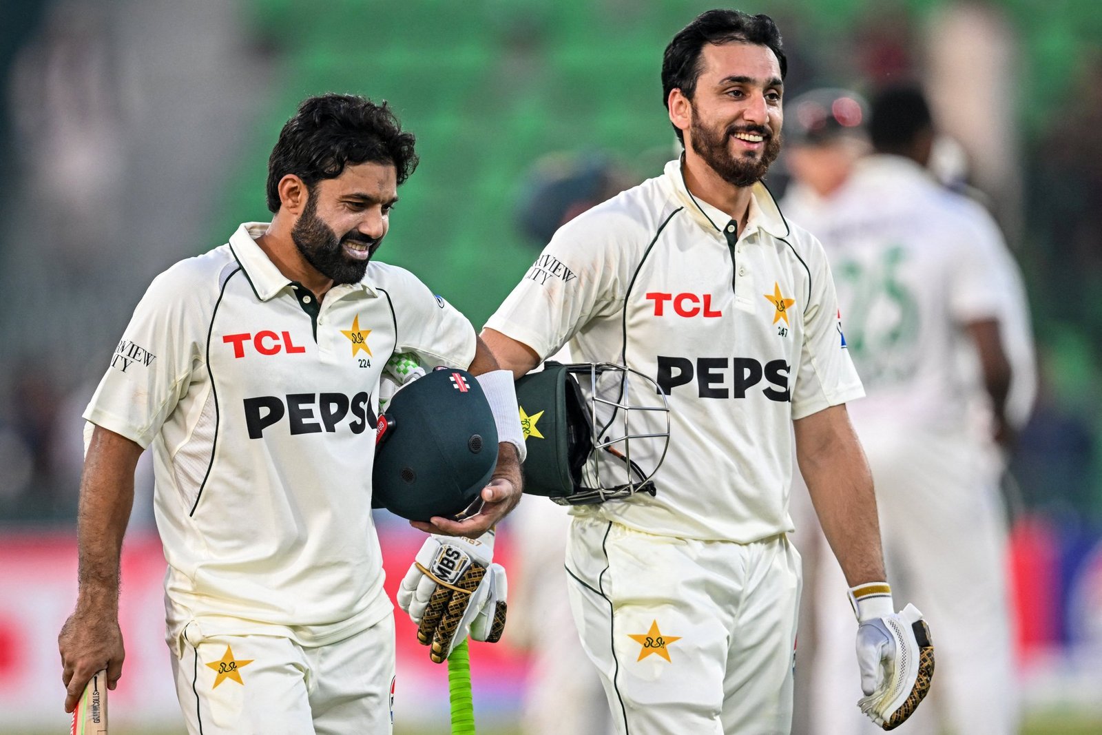 Pakistan ended the first day with 313 runs. Today, on the second day, they started their first incomplete innings at 313 for 5 with Mohammad Rizwan on 62 and Salman Ali Agha on 52.