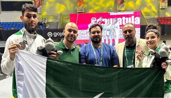 Pakistan’s Ihteshamul Haq won the silver medal in the Asia Open Karogi Taekwondo Championship.