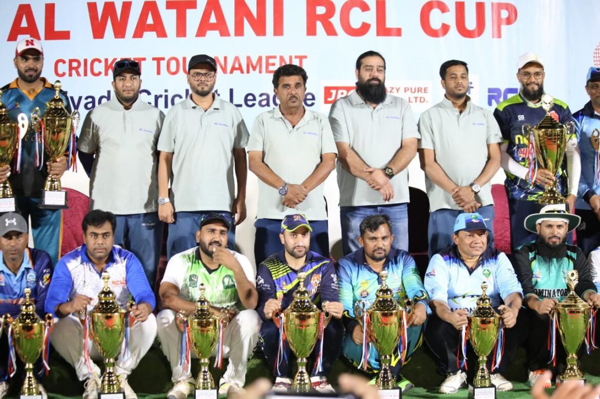 Riyadh, (Kamran Ashraf) The Riyadh Cricket League (RCL) held a spectacular ceremony this weekend to honor the winners of the prestigious HRH Tournament, Saturday League Tournament, and Youm Al Watani Tournament. The event, which celebrated the achievements of cricket teams in Saudi Arabia, took place in the presence of RCL President Hanif Babar, Rayees Mohammed– Chief Operating Officer, Irfan Siddiqui – Senior Vice President, Syed Idris General Secretary, Wajahat Hussain – Joint Secretary, Mohammad Iftikhar, Naveed, Shakeel Siddiqui, Mohammad Ibrahim, Shawan Khan , players, team captains, and local citizens.
