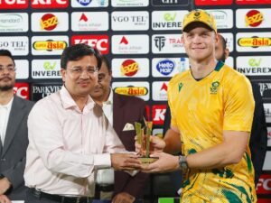 South Africa defeated Pakistan by 55 runs in the first match of T20 series to take a 0-1 lead in the series. Chasing a target of 195 runs, Pakistan were all out for 139 in the 19th over. The match played in Rawalpindi, Pakistan won the toss and invited South Africa to bat first. South Africa scored 194 runs for the loss of 9 wickets in 20 overs. Reza Hendricks scored 60, George Linde 36 and De Zorzi scored 33 runs. For Pakistan, Muhammad Nawaz got 3 wickets, Saim Ayub got 2 wickets, while Shaheen Afridi, Abrar Ahmed and Naseem Shah got one wicket each.