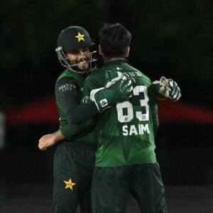 In the second T20 match of the tri-nation series played in Sharjah, Pakistan won the toss and elected to bat against the United Arab Emirates. The Pakistan team, playing first, was bowled out for 207 runs on the last ball of the 20th over. For Pakistan, Saim Ayub played an innings of 69 runs, Hassan Nawaz scored 56 runs, and Muhammad Nawaz scored 25 runs. UAE’s Saghir Khan and Junaid Siddiqui got three wickets each, while Haider Ali dismissed two players.